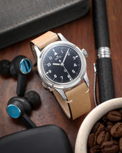 At this time there was no GPS and most navigation carried out was by "dead reckoning", calculated by journey start and end points, bearing, speed and elapsed time.  Timepieces in use at this time were not sturdy or accurate enough to produce reliable results, mainly due to high magnetic fields from the map painting radar screens used in aircraft.   In 1946 or 47 the RAF decided that they needed a more reliable timepiece and the Air Ministry approached Goldsmiths and Silversmiths Ltd to specify and acquire a high quality watch.   The main specifications were chronometer grade, high anti-magnetic properties (12,000A/m) and good legibility.   Two companies eventually won the tender to supply, International Watch Company (IWC) and Jaeger LeCoultre (JLC) and the watches, both designated Mk 11, entered service in 1949.